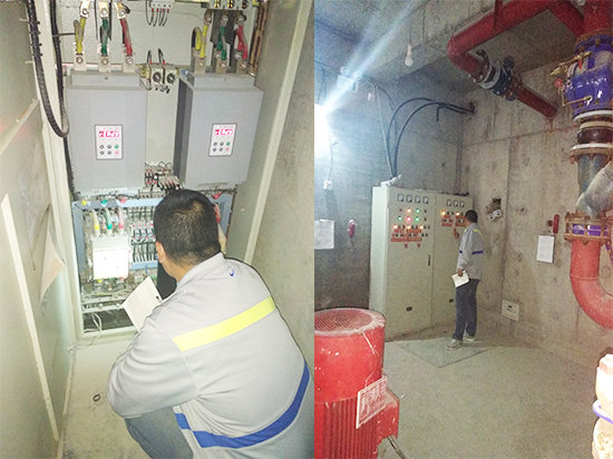 检测防火卷帘、排烟、送风风机等能否联动及手动工作进行。